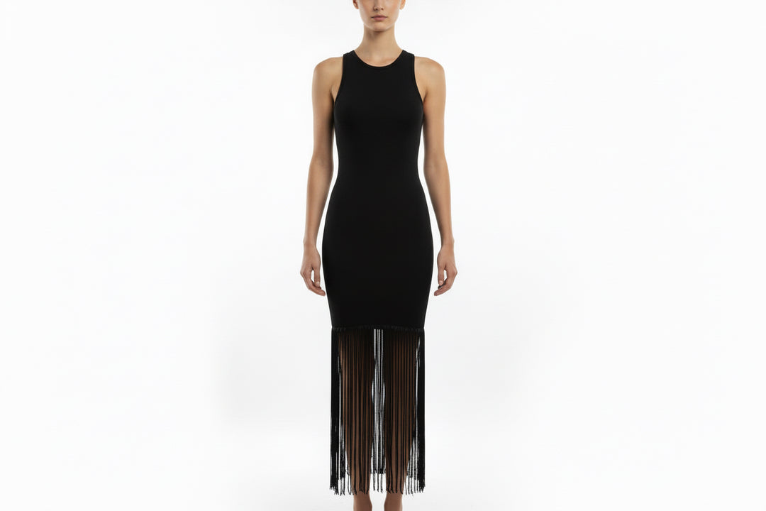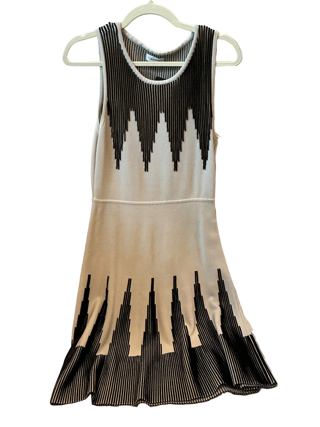 White Calvin Klein dress with black stripes