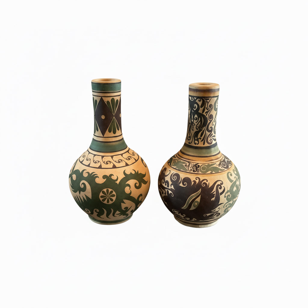 Hand-Painted Green and Tan Decorative Vase